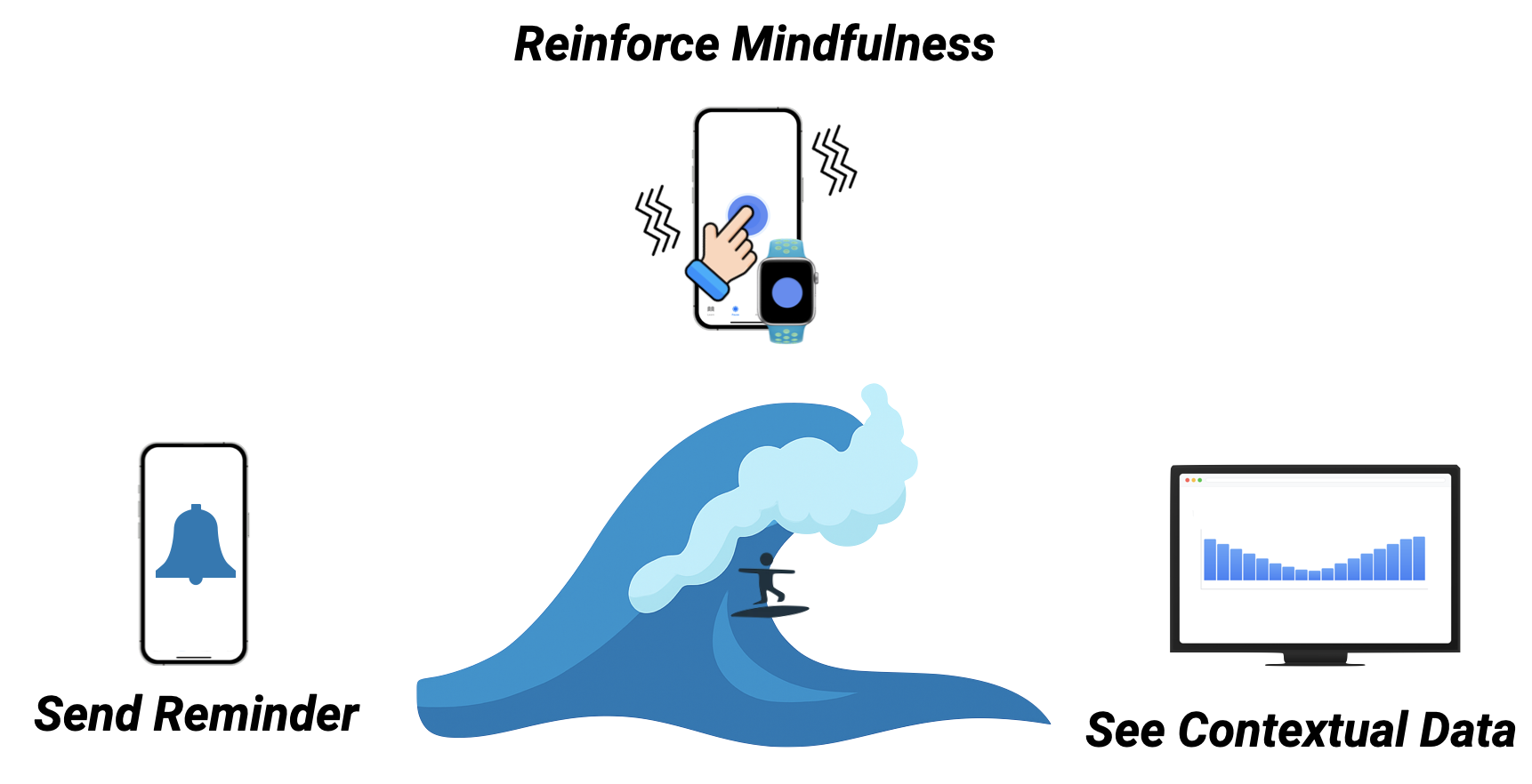 The Habit Bandz tool helps clients practice the mindfulness technique urge surfing on their iPhone or Apple Watch using haptic vibrations. Discuss therapeutic progress with contextual data collected in the Habit Bandz Dashboard.